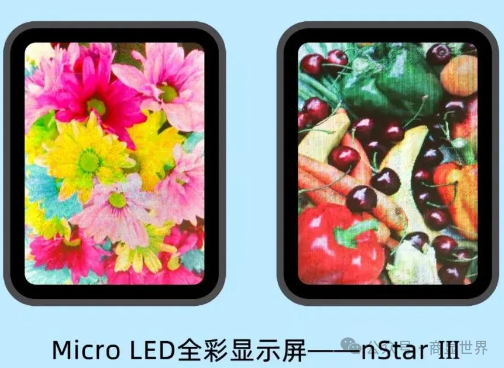 近日,国星光电Micro LED超高清显示研发项目迎来关键里程碑式进展,成功点亮1.84英寸Micro LED全彩显示屏——nStar Ⅲ,该屏采用LTPS-TFT玻璃基驱动背板,像素间距缩小到0.078mm,分辨率360*480,采用全倒装无衬底LED像素发光单元,可实现屏幕峰值亮度大于1500nits,强光照射下仍可保持高清显示画面。(国星光电)