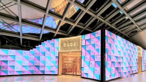 曼谷素万那普机场LED屏布满GUCCI门店外立面