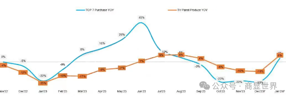图二:TV面板产出与主要品牌采购同比走势 ![]()