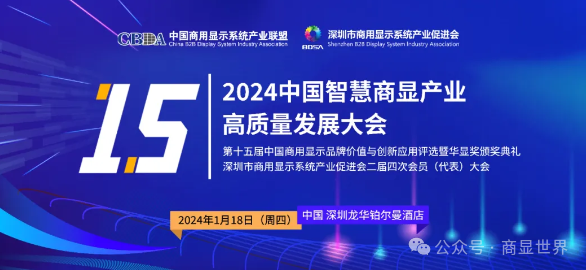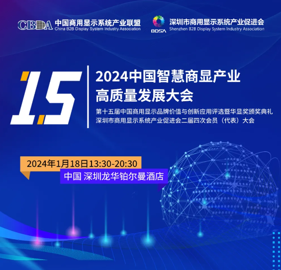 为贯彻落实党的“二十大”会议精神,深入分析当前显示行业面临的新情况、新问题,研究新形势下行业及企业高质量发展路径,助力我国显示强国建设,由中国商用显示系统产业联盟、深圳市商用显示系统产业促进会主办的“2024中国智慧商显产业高质量发展大会”将于2024年1月18日盛大启幕。