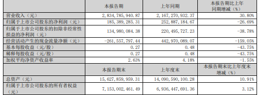 华灿光电一季度营业收入8.29亿元,同比增长107.51%。归属于上市公司股东的净亏损1.07亿元,同比收窄13.24%。归属于上市公司股东的扣除非经常性损益的净亏损1.36亿元,同比收窄7.92%。基本每股收益-0.07元/股。对于业绩变化原因,财报并未具体说明。