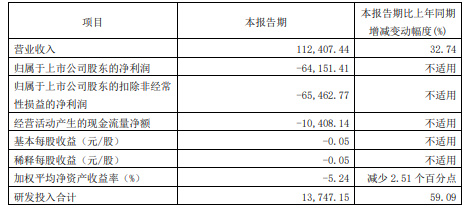 和辉光电一季度营业收入11.24亿元,同比增长32.74%;归母净利润亏损6.42亿元,上年同期亏损4.26亿元;扣非净利润亏损6.55亿元,上年同期亏损4.52亿元;经营活动产生的现金流量净额为-1.04亿元,上年同期为-1.01亿元;报告期内,和辉光电基本每股收益为-0.05元。