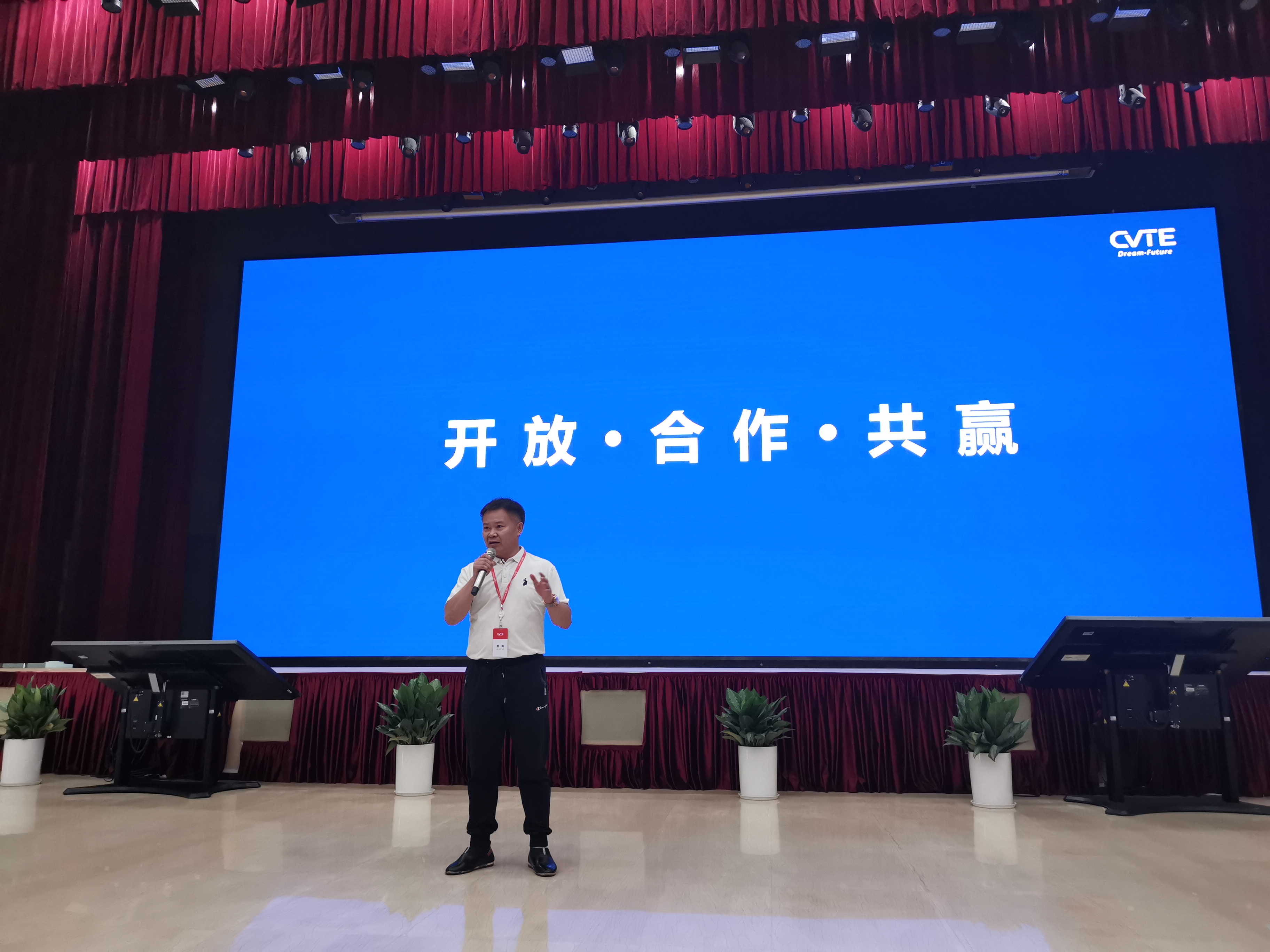 商用显示事业群副总裁方掀以PPT展示的形式向大家从企业信息、组织架构、研发设计、产业布局、以及竞争优势解决方案等几个方面向大家简述介绍了视源股份。对商显的市场进行了解读,以此为基础从研发、制造等多维度讲解了视源的实力,并介绍了视源接下来的战略方向。并表示视源将会做到内外结合,与外部客户做好合作服务保障,与内部企业伙伴做到联动合作,为全球品牌提供核心驱动力。