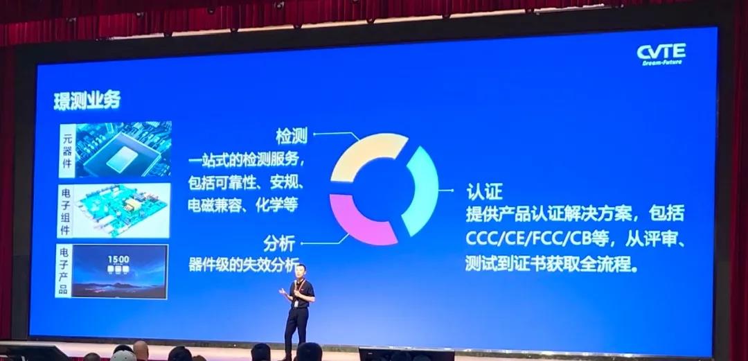 据璟测实验室总经理沈春兴从实验室能力、业务范围、特色及优势等方面的介绍,大家了解到了璟测实验室的基本信息,得知璟测实验室不仅是为视源股份服务,同样也为外部企业提供测试服务。璟测实验室可从产品,技术方面为元器件、电子主件、电子产品做检测,器件级的失效分析以及产品认证等服务,一同实现行业质量水平的提升。