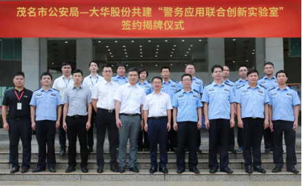 近日,广东省茂名市公安局与大华股份签署战略合作协议,双方携手成立“警务应用联合创新实验室”,共同推进前沿技术在公安领域的应用与创新。茂名市公安局党委委员、副局长方杰,大华股份国内营销中心副总裁杨斌等双方领导出席签约暨揭牌仪式。