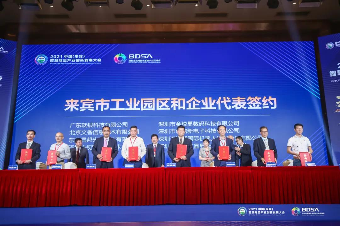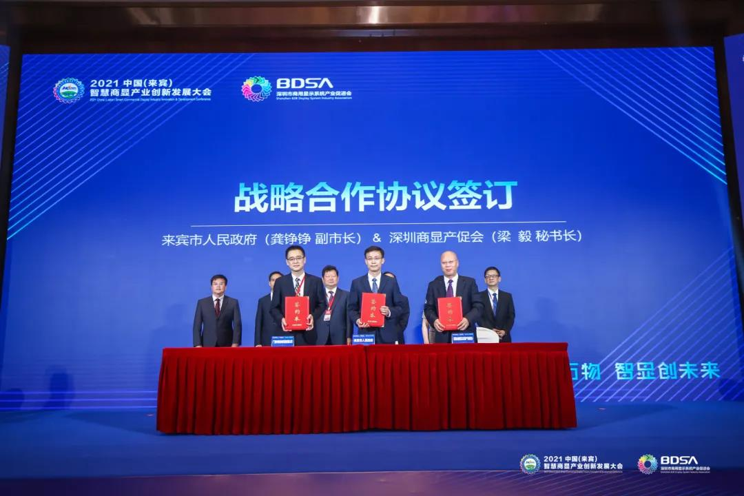 政企合作 共赢成长。2021年5月21日,由来宾市人民政府、中国商用显示系统产业联盟、深圳市商用显示系统产业促进会联合主办,来宾市工业园区管理委员会、广西中沛光电科技有限公司、深圳融华智显产业服务有限公司承办,以“屏联生万物,智显创未来”为主题 的“2021 中国(来宾)智慧商显产业创新发展大会”在广西壮族自治区来宾市来宾饭店成功举办。大会圆满达成了来宾市人民政府与深圳市商用显示系统产业促进会战略合作协议签订,以及来宾工业园区与企业代表签约,强强联合、战略共赢,加速推进智慧商显产业乃至数字经济在来宾、全国、全世界的跨越创新发展与贡献力量。![]()